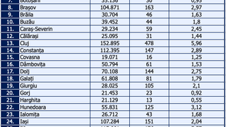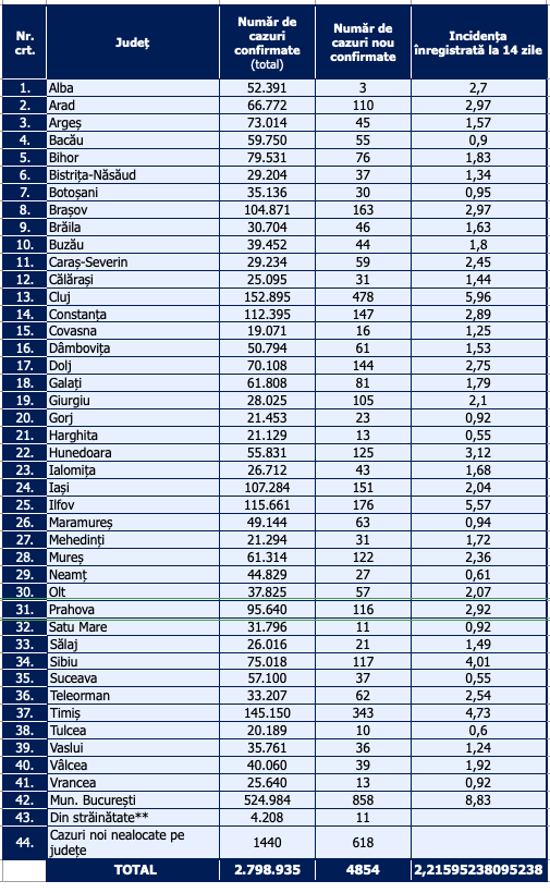 Distribuția pe județe a cazurilor per total și a celor noi