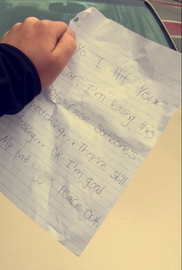 2 din 2 | Biletul pe care l-a gasit in parbriz soferul unei masini. Cine i-a lovit autoturismul, apoi i-a scris ASTA. "Ti-am lovit masina si las acest bilet pentru ca..."