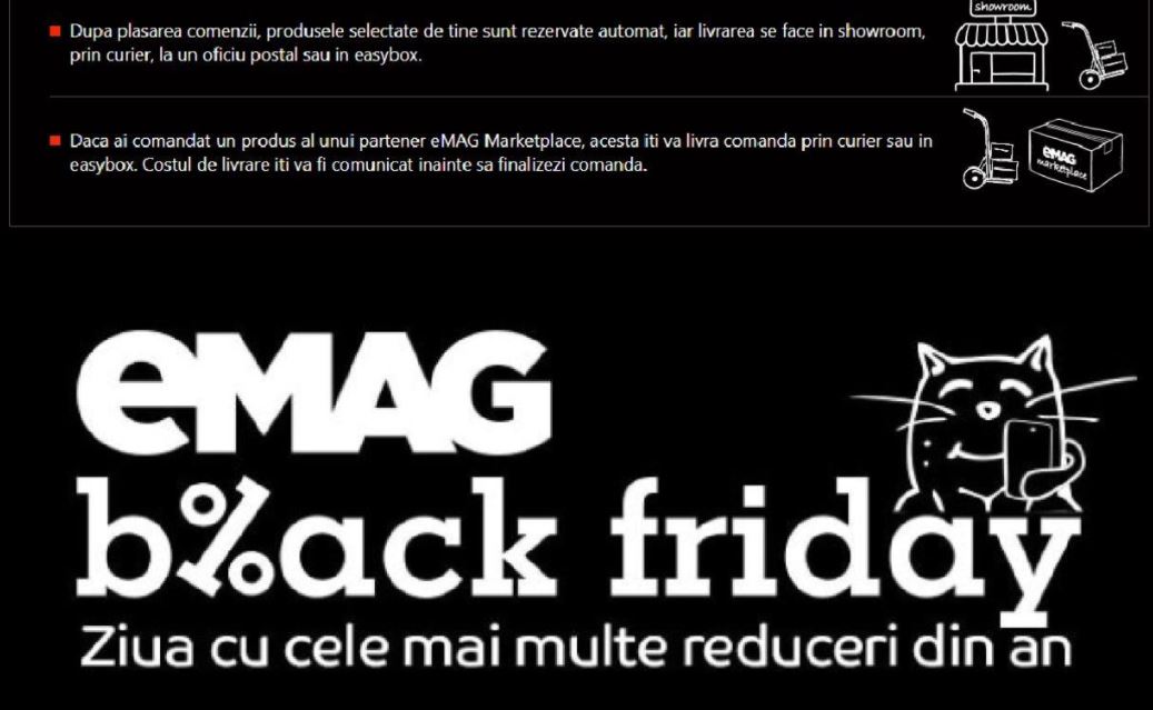 Emag este compania care a introdus în România conceptul de Black Friday. Prima ediţie a fost organizată în 2011, iar de atunci Emag a fost lider în aducerea de noutăţi pentru clienţi.