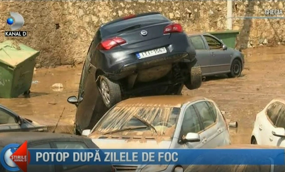 Dupa atatea zile de foc, Grecia se confrunta acum cu ploi torentiale. Atena si mai multe orase din jurul ei au fost afectate.