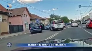 Stirea "Blocat în trafic de mascați" difuzata in cadrul Stirilor KANAL D din 28 06 2022