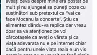 "Dacă aveați ceva despre mine era postat de mult și nu ajungeai să puneți poze cu susținători sub pretextul că "vai ce face Mocanu la concerte.