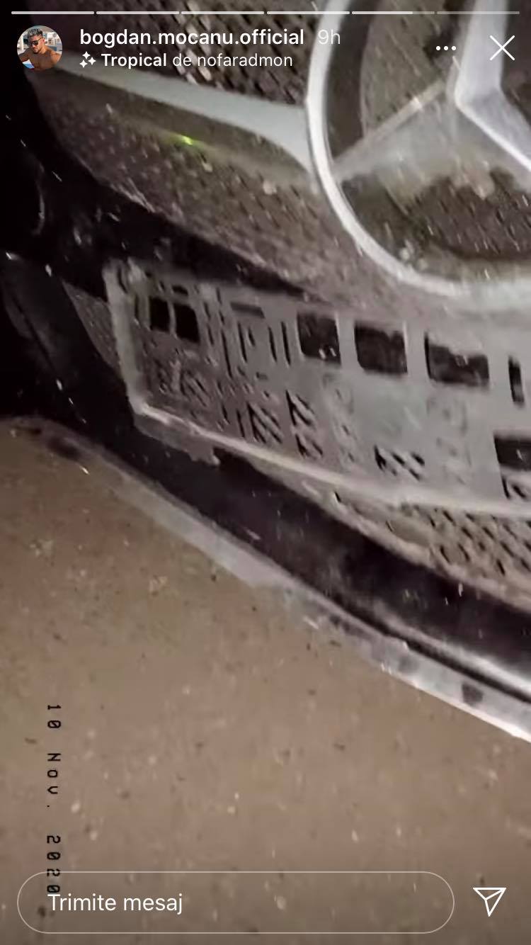 Mocanu a adăugat: „Mă bucur că am ajuns acasă sănătoși, doar noi...pentru că mașina...nebuna. Are probleme cu bara, numărul pa-pa, aparent și radiatorul s-a dus. O vulpiță grăbită a sărit când nu trebuia. Ea a supraviețuit, din fericire. Bara mea nu. Trebuie să-i caut un mecanic neapărat. Să rezolv problema până mâine că nu se poate circula altfel.”.