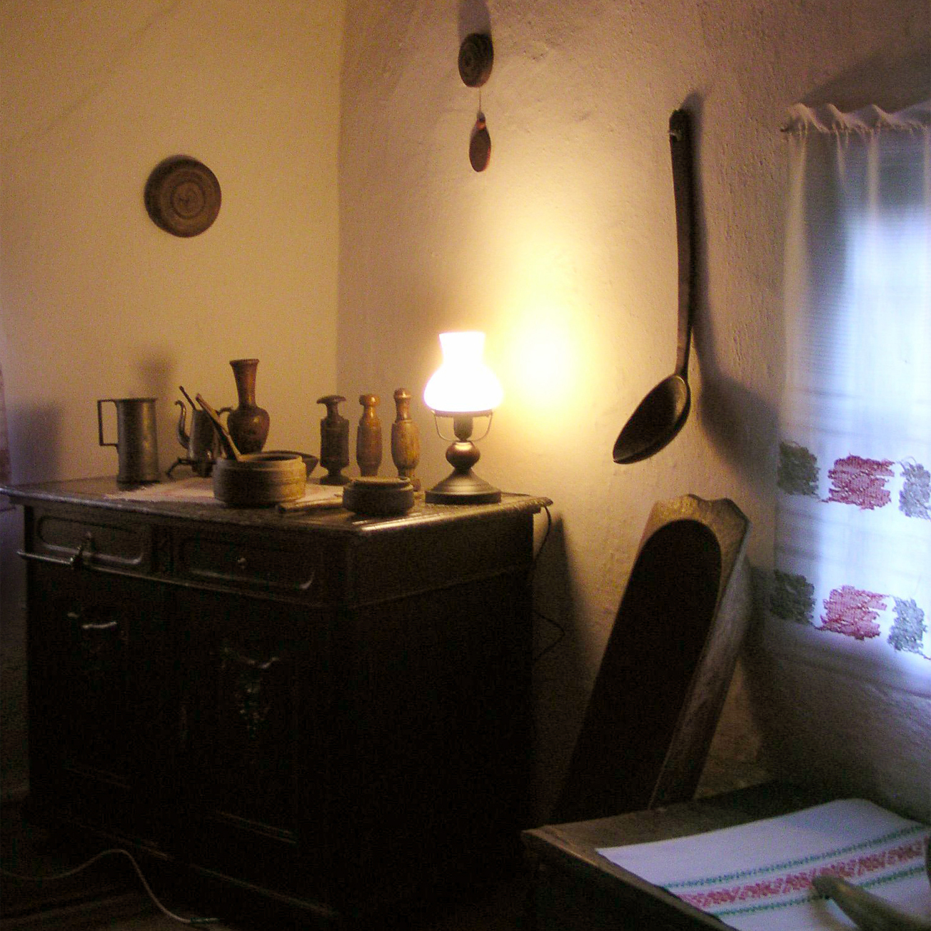 ”Sub fereastra laterală avem măsuța de lucru, cu toc, călimară, o lampă care face mai mult fum decât lumină, o foaie de manuscris, un număr din Convorbiri Literare în care Creangă își publică în timpul vieții poveștile, povestirile și amintirile”, ne spune muzeograful George Drîmbei.