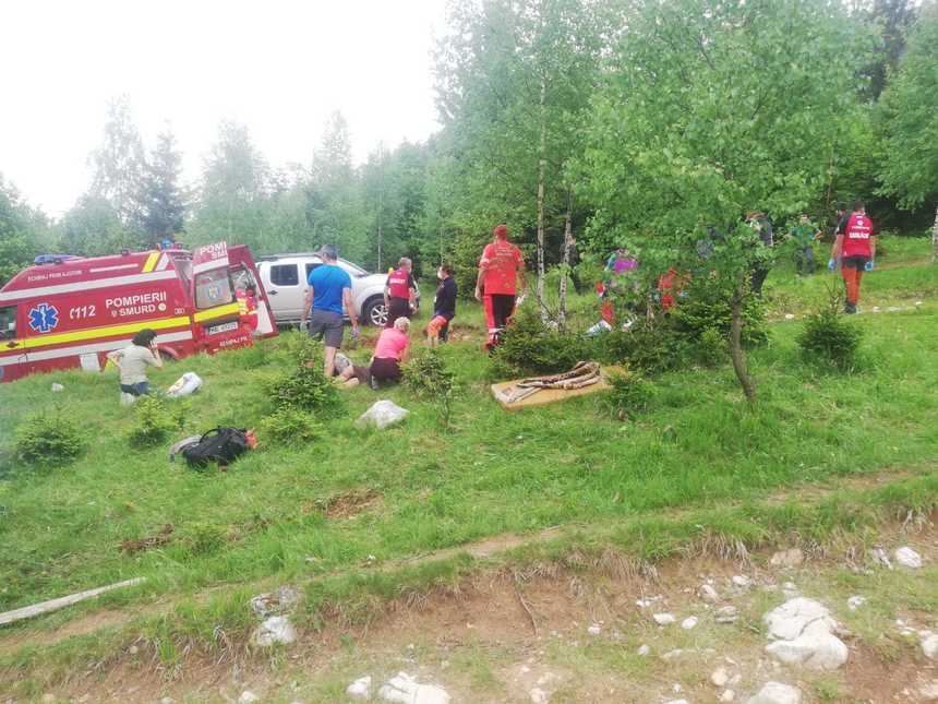 Şapte persoane au fost transportate la spital, duminică, după ce remorca unui tractor s-a răsturnat, pe un drum forestier din judeţul Braşov.