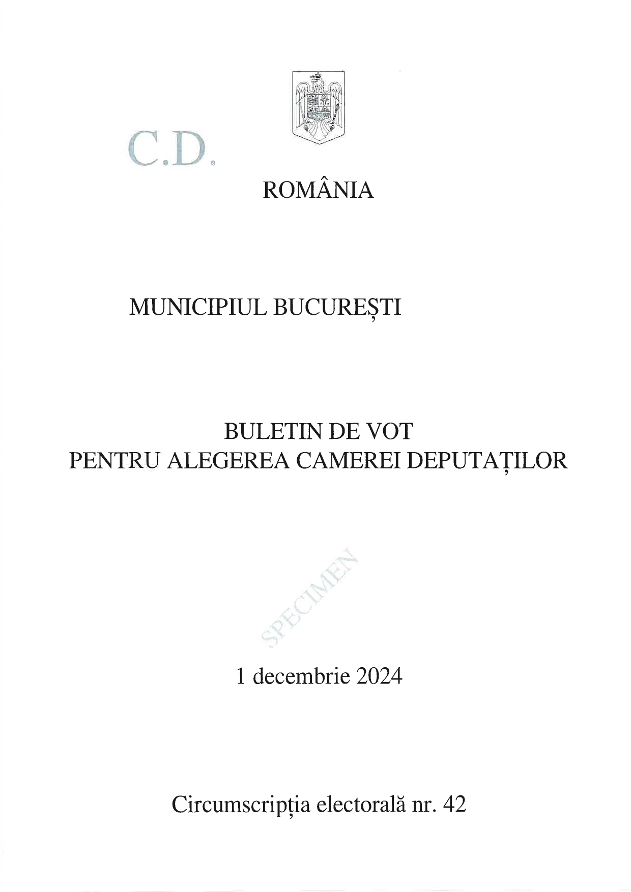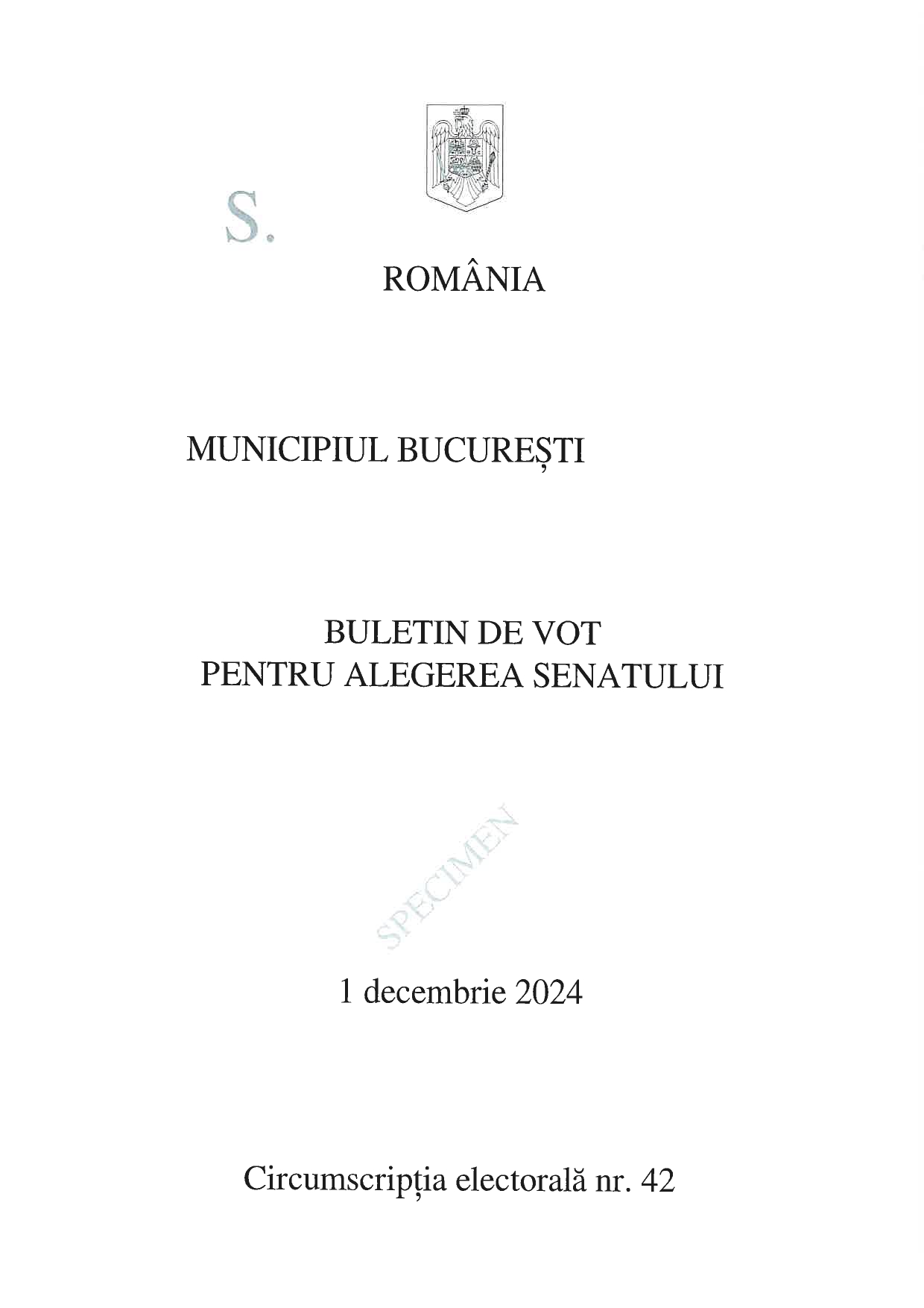Buletin de vot parlamentare 2024: București - SPECIMEN pentru Senat și Camera Deputaților