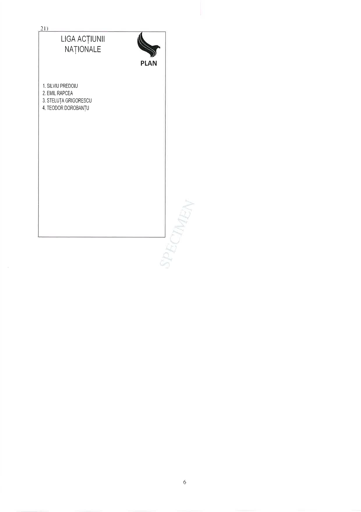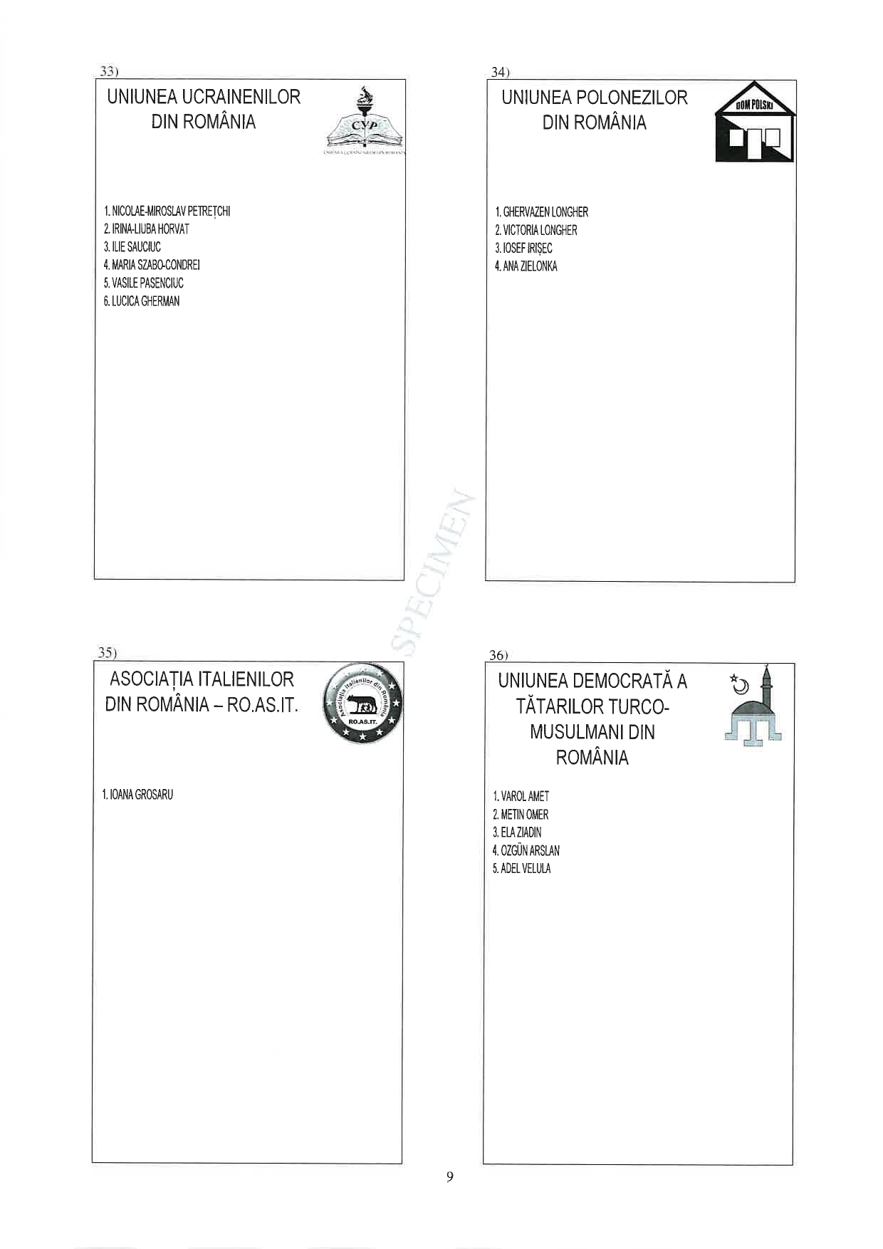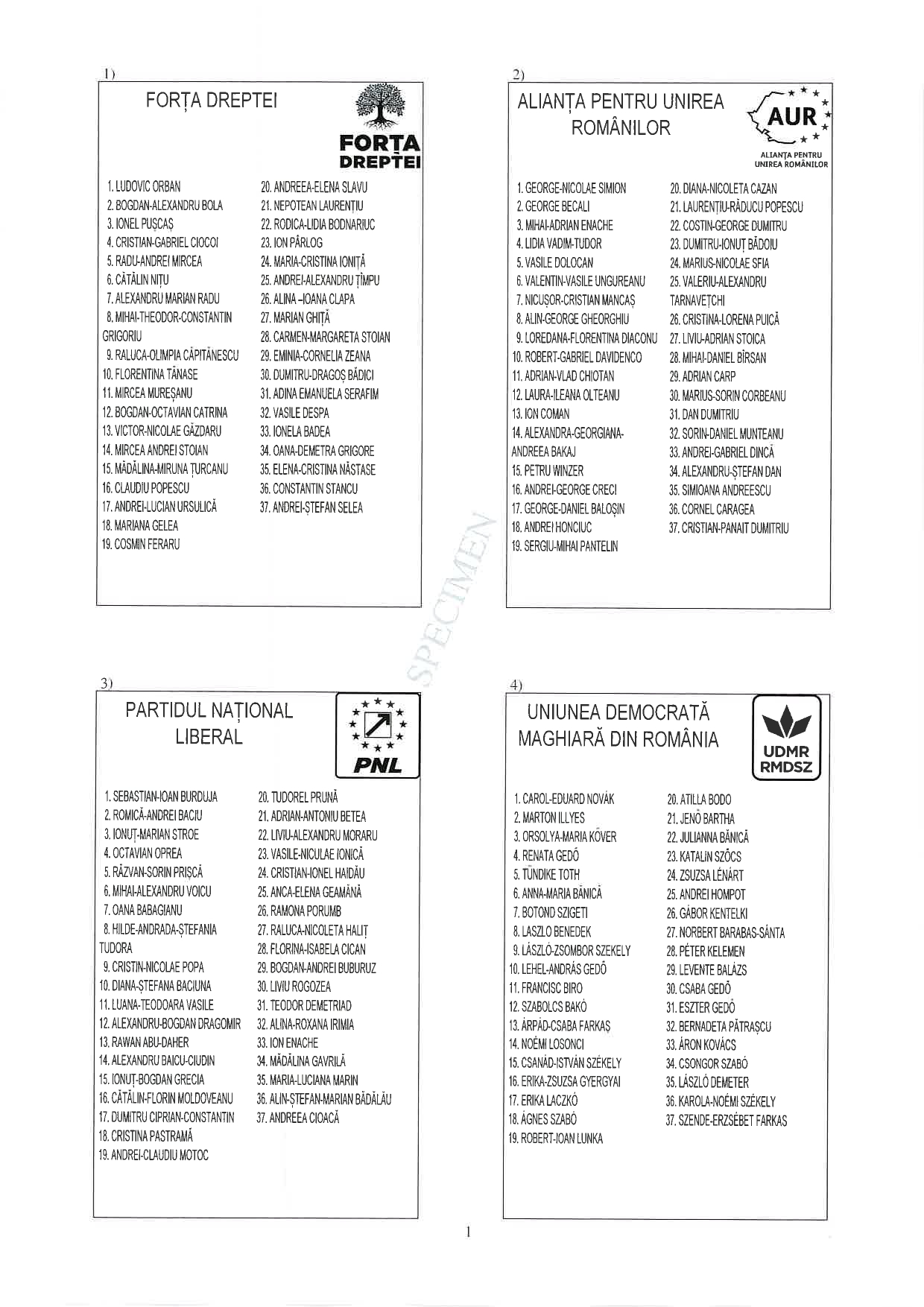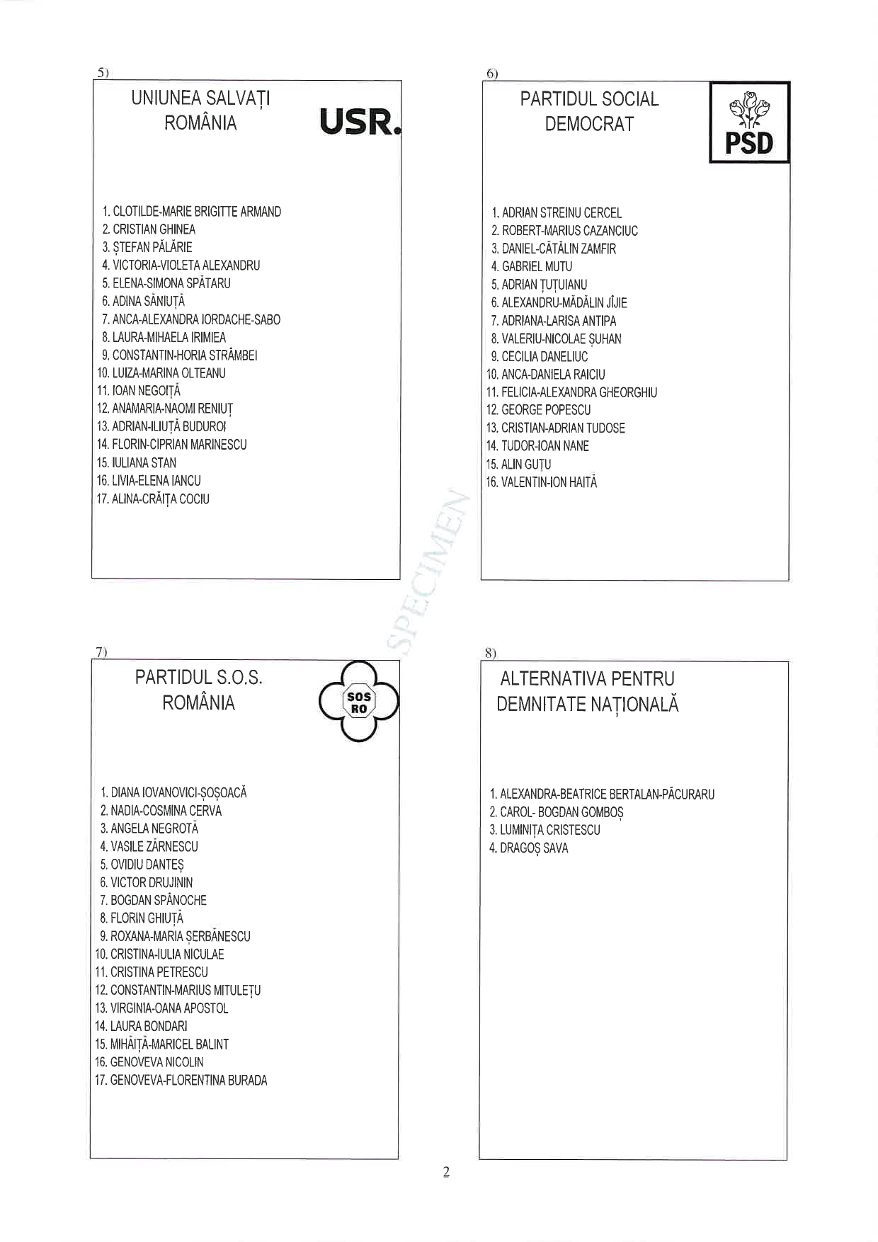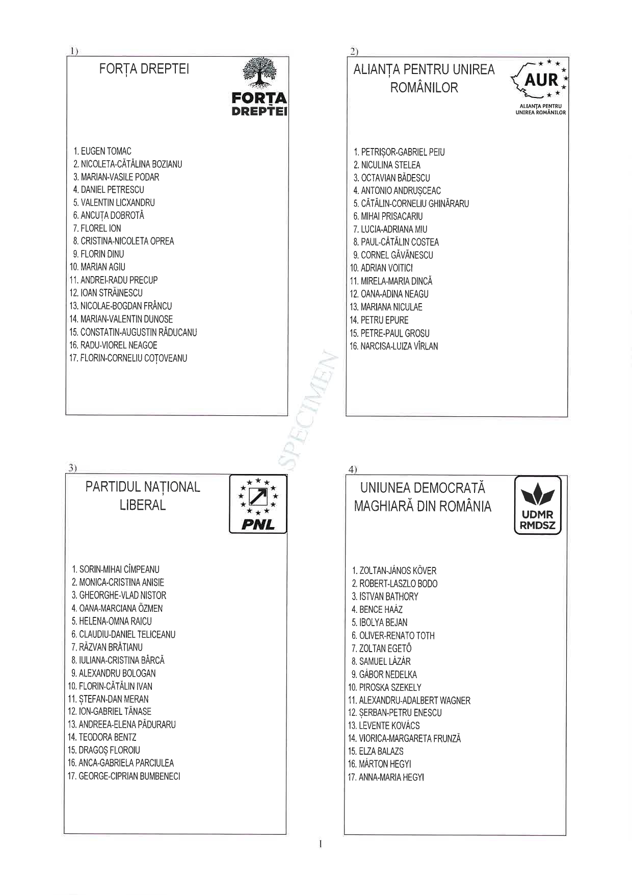 Prenumele și numele candidaților, alături de numărul de ordine al fiecărei candidaturi.