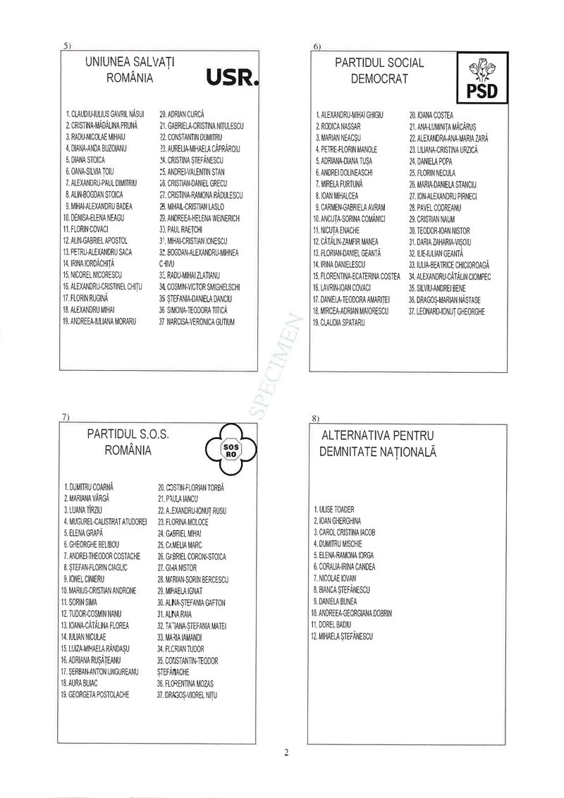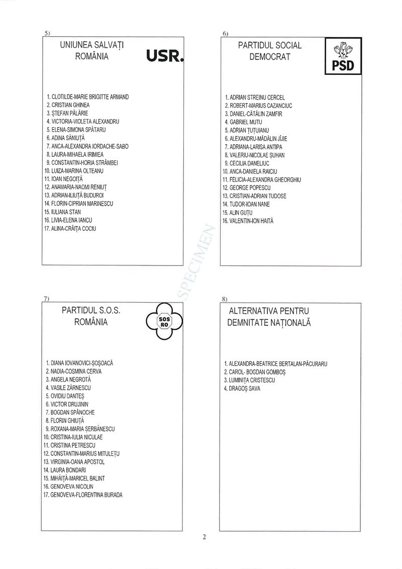 2 din 25 | Buletin de vot parlamentare 2024 pentru București - SPECIMEN pentru Senat și Camera Deputaților
