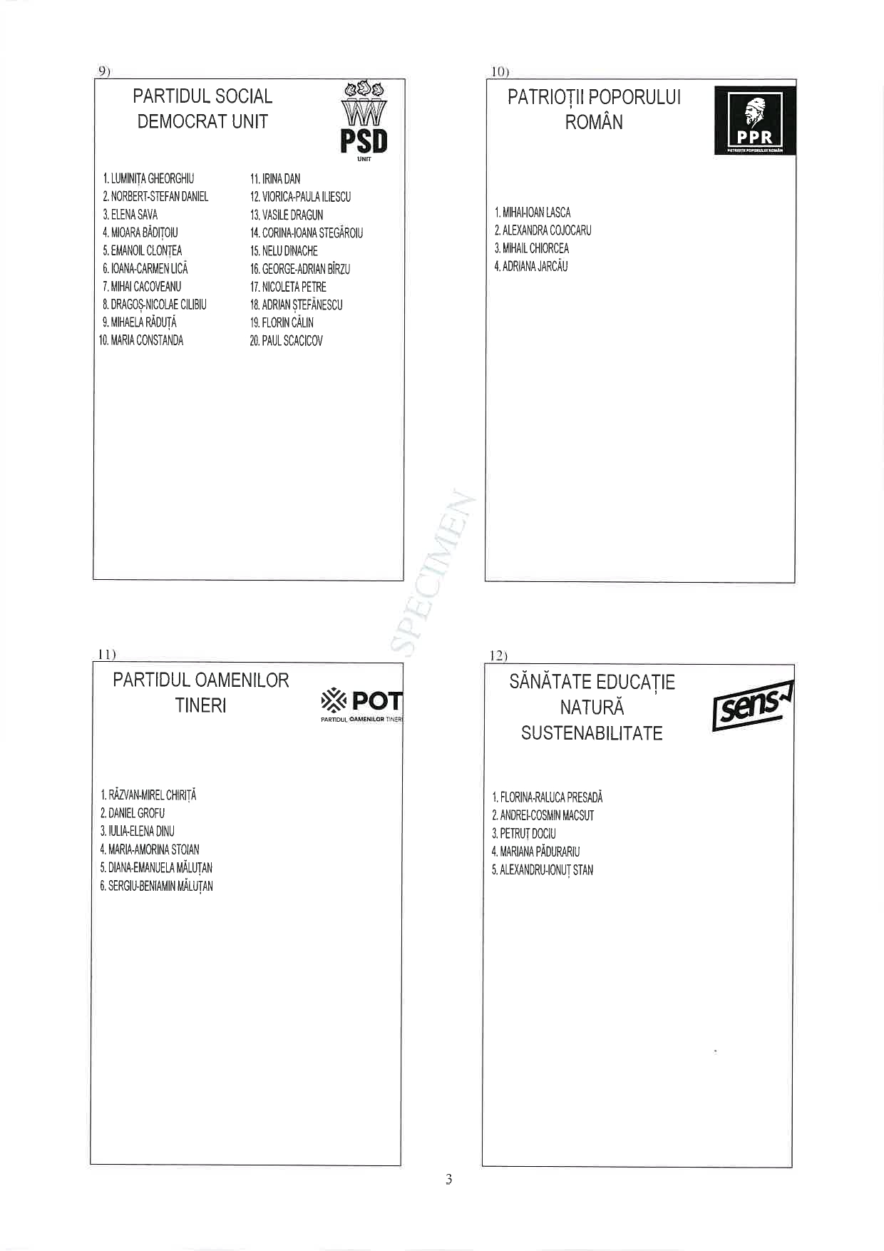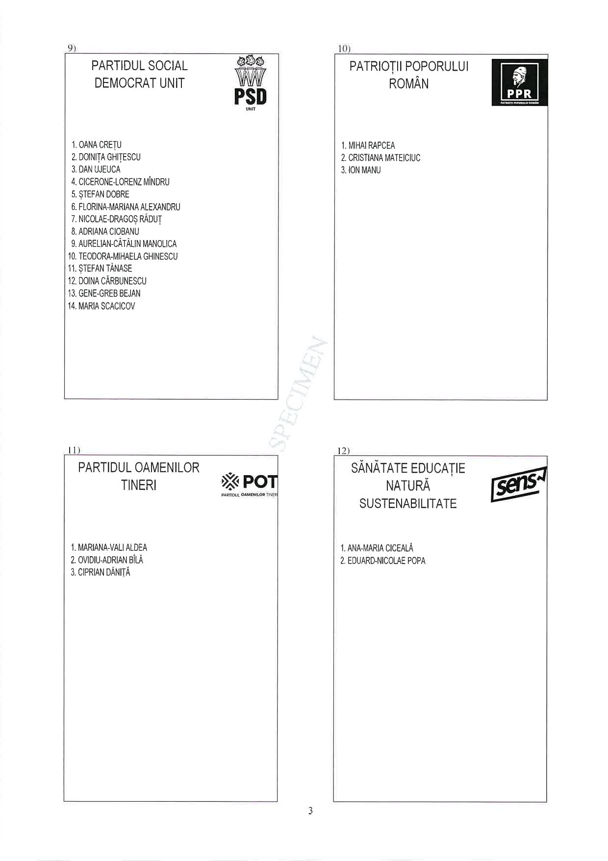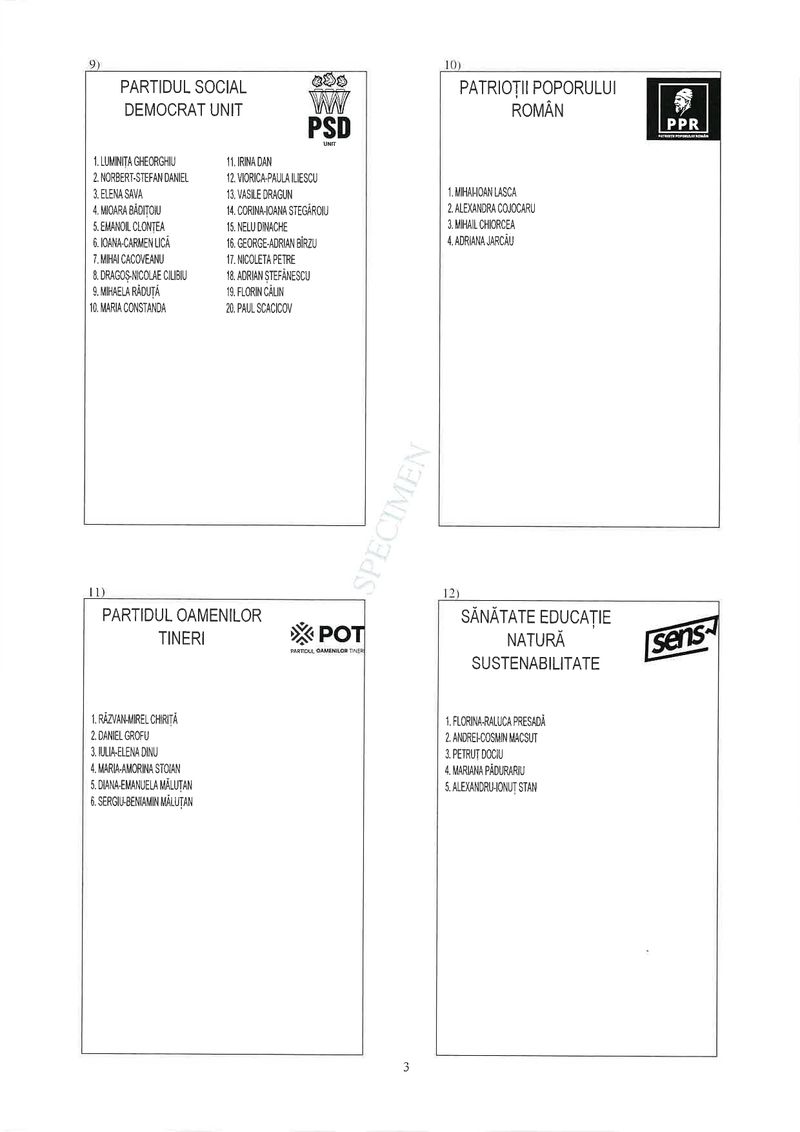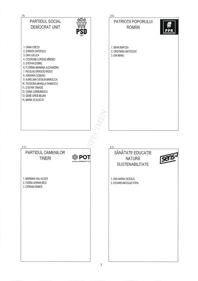 3 din 25 | Buletin de vot parlamentare 2024 pentru București - SPECIMEN pentru Senat și Camera Deputaților