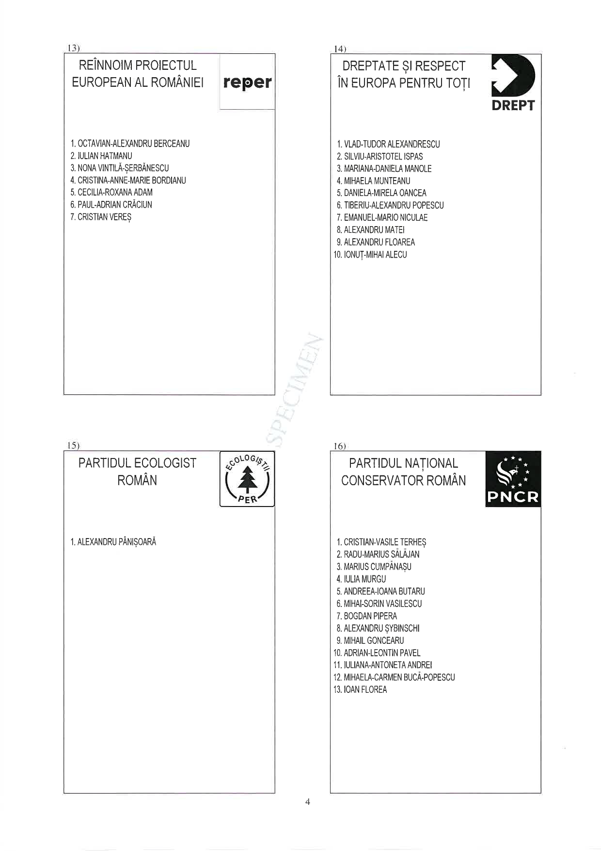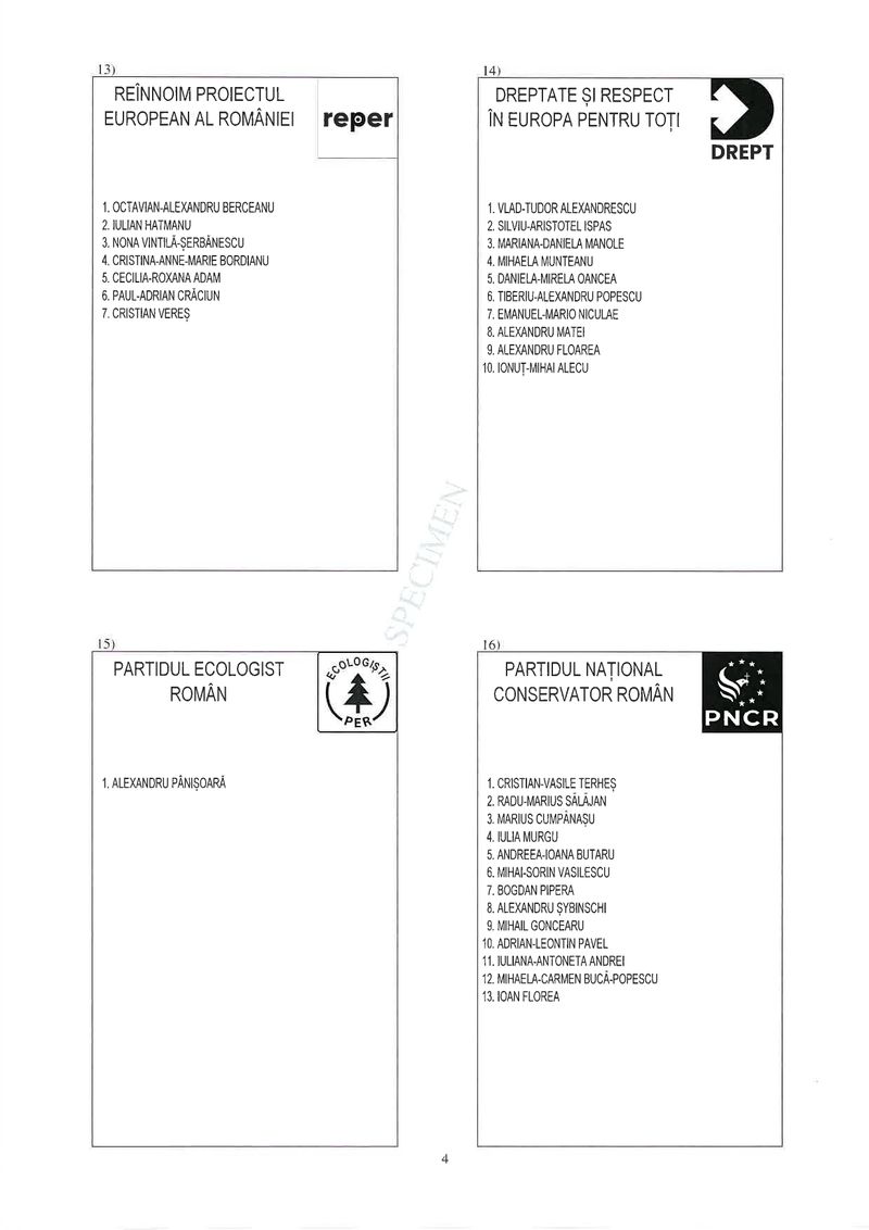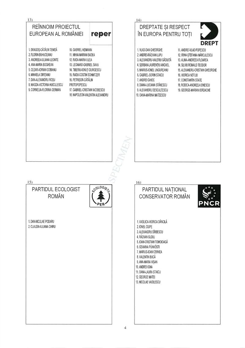 13 din 25 | Buletin de vot parlamentare 2024 pentru București - SPECIMEN pentru Senat și Camera Deputaților