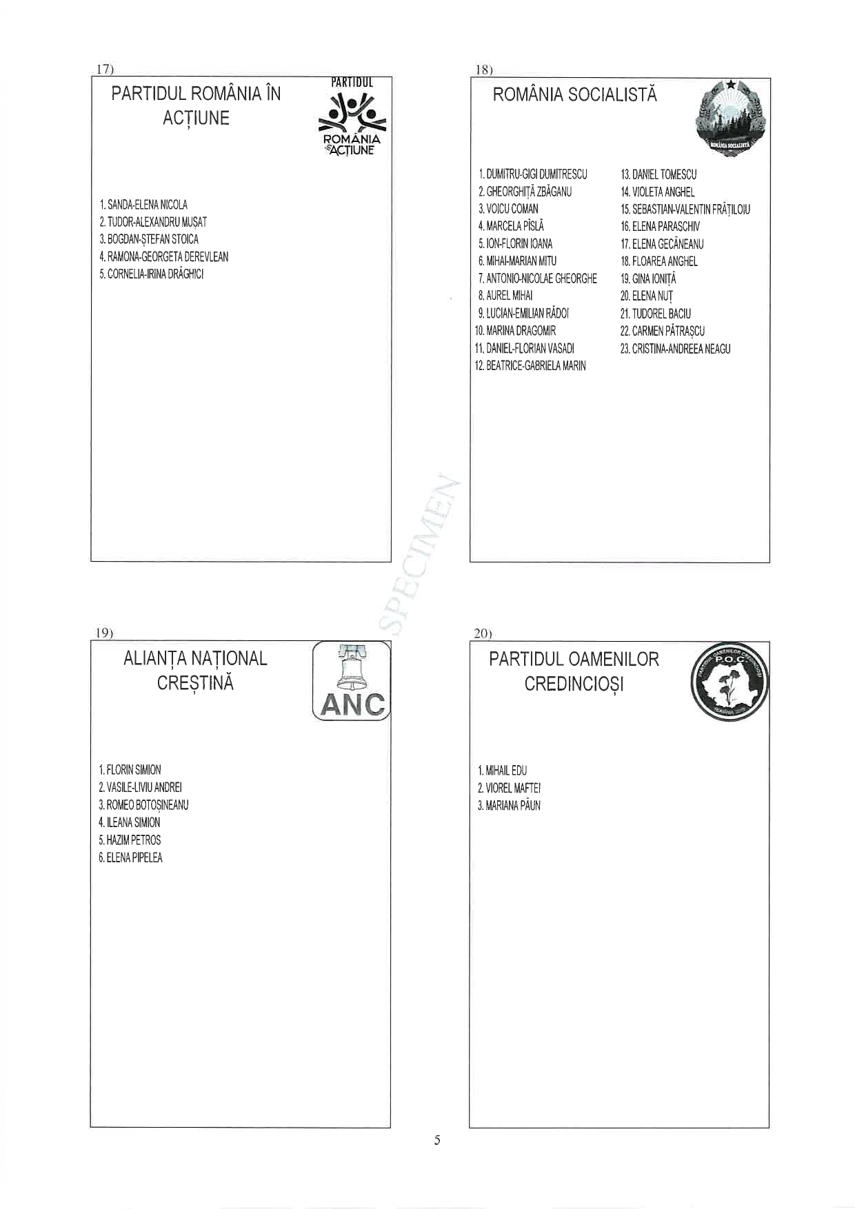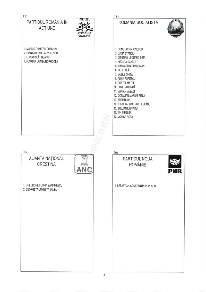 17 din 25 | Buletin de vot parlamentare 2024 pentru București - SPECIMEN pentru Senat și Camera Deputaților