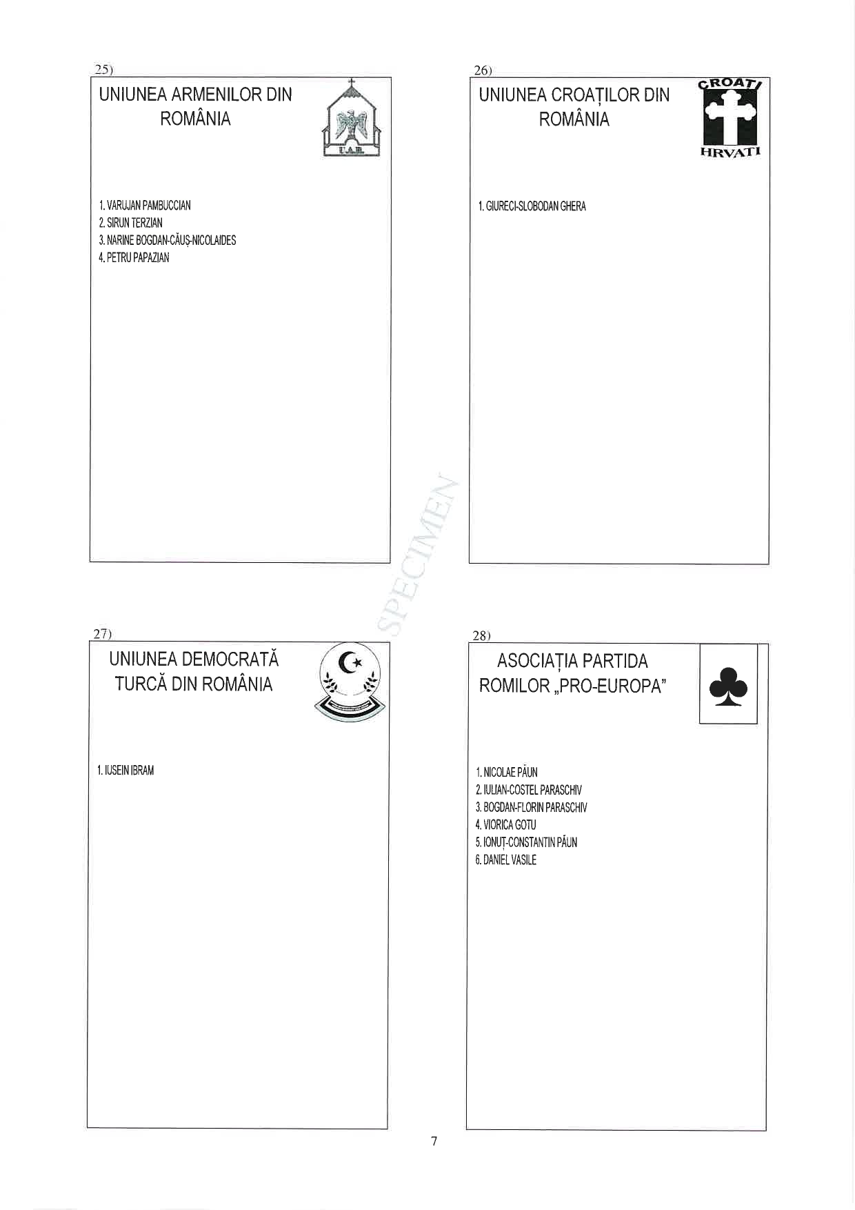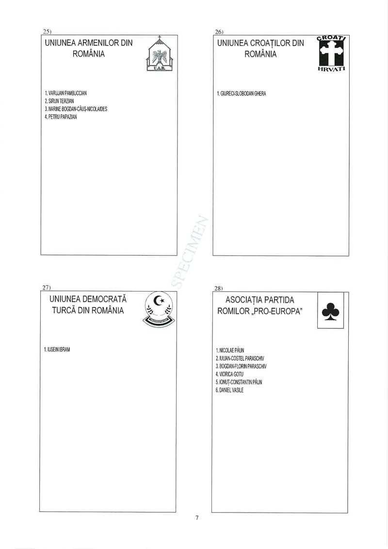 7 din 25 | Buletin de vot parlamentare 2024 pentru București - SPECIMEN pentru Senat și Camera Deputaților