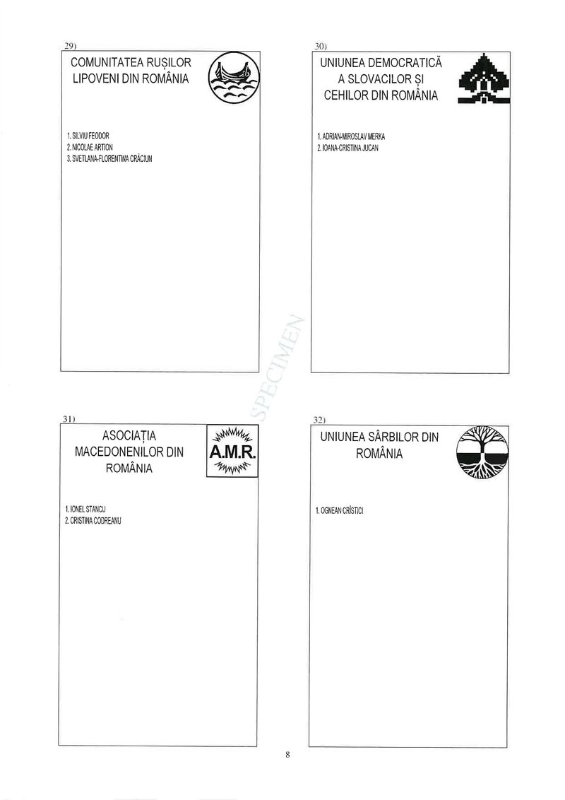 8 din 25 | Buletin de vot parlamentare 2024 pentru București - SPECIMEN pentru Senat și Camera Deputaților