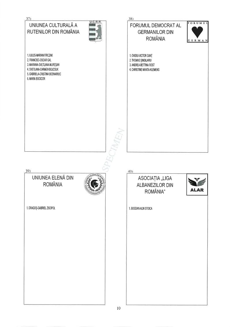 10 din 25 | Buletin de vot parlamentare 2024 pentru București - SPECIMEN pentru Senat și Camera Deputaților