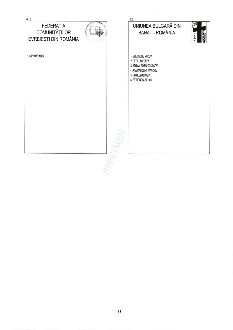 11 din 25 | Buletin de vot parlamentare 2024 pentru București - SPECIMEN pentru Senat și Camera Deputaților