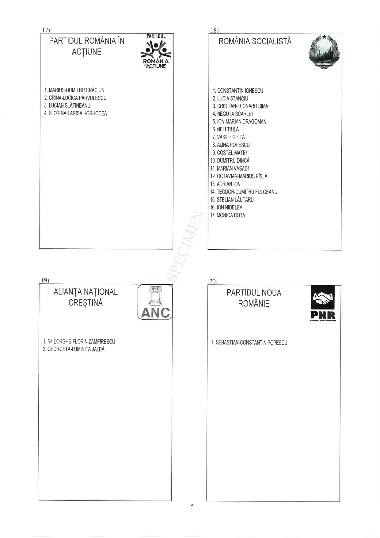 5 din 25 | Buletin de vot parlamentare 2024 pentru București - SPECIMEN pentru Senat și Camera Deputaților
