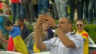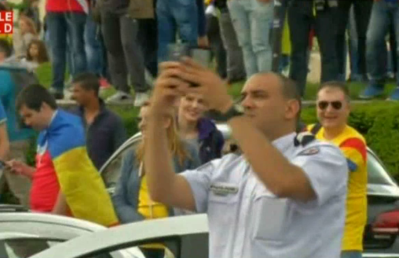 Spectacolul romanilor nu l-au lasat indiferent pe acest politist francez care a vrut neaparat sa imortalizeze momentul cu telefonul sau.