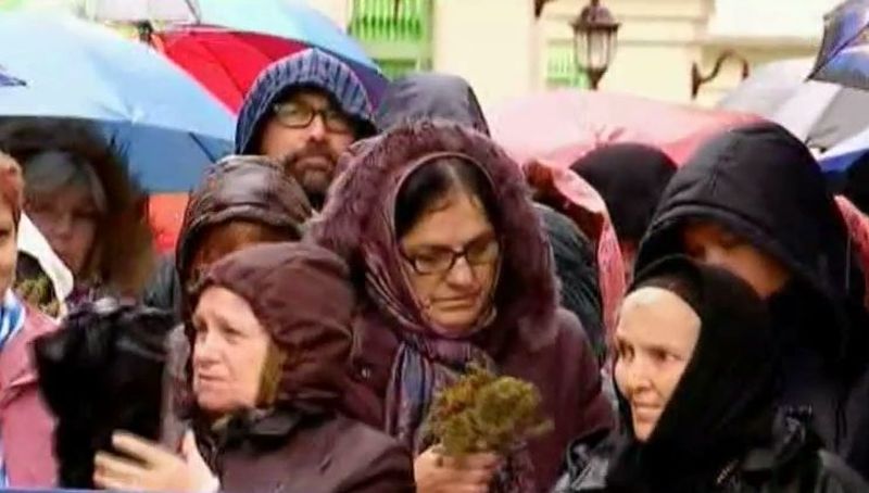 Bunica Niculina are 85 de ani. Nu ar lipsi pentru nimic in lume de la sarbatoare. Spune cu mana pe inima ca nici ploaia nu o uda si nici frigul nu o face sa tremure. Credinta o ajuta sa treaca peste toate si sa reziste la coada in ciuda varstei inaintate.