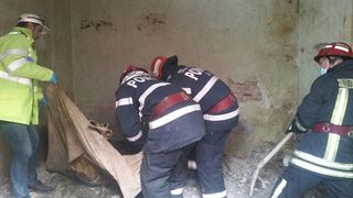 La fata locului a ajuns o autospeciala cu sase pompieri care au indepartat bucatile de tavan cazute peste trupul neinsufletit, care a fost dus ulterior la morga pentru necropsie.
