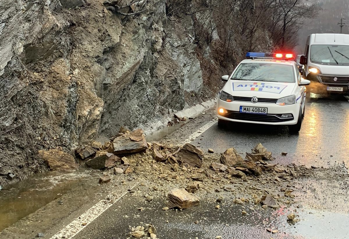 ”Din cauza căderilor de pământ şi arbuşti de pe versant, este oprită deplasarea pe sensul Sibiu – Râmnicu Vâlcea al DN 7, la kilometrul 199+300 metri, în zona localităţii Călimăneşti, judeţul Vâlcea”, anunţă Centrul INFOTRAFIC din Inspectoratul General al Poliţiei Române.