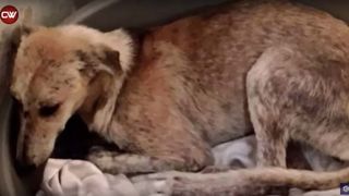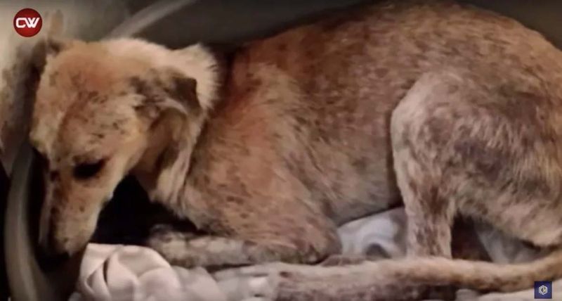 Extrem de trist, câinele pur şi simplu aştepta ca familia lui să se întoarcă la el.