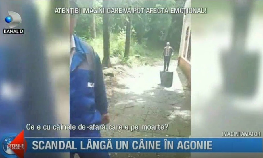 Imagini socante cu un caine in agonie au fost surprinse langa un adapost de animale din judetul Sibiu.