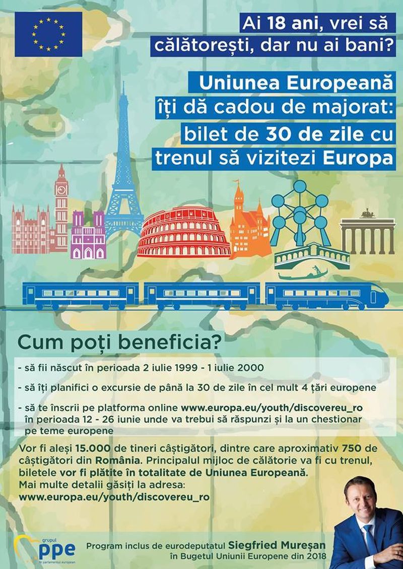- sa iti doresti sa devii ambasador al initiativei DiscoverEU.