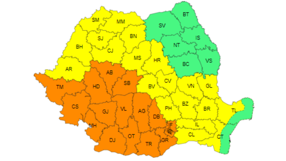 Administrația Națională de Meteorologie a emis atât un cod galben, cât și un cod portocaliu de caniculă. În aproape toată țară sunt așteptate temperaturi extrem de ridicate, iar disconfortul termin se așteaptă a fi accentuat.