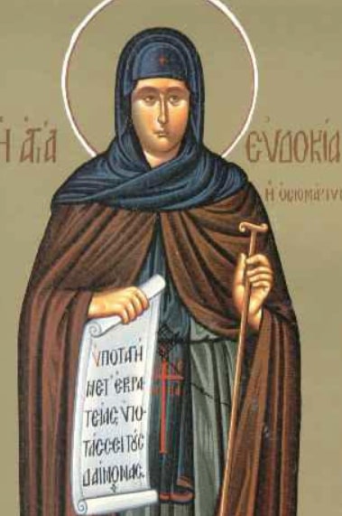 Sfânta Cuvioasă Muceniță Evdochia a trăit în timpul împăratului Traian (98-117) și ducea în orașul Iliopolis din Siria o viață de desfrâu și păcat din care își agonisise o avere destul de mare.