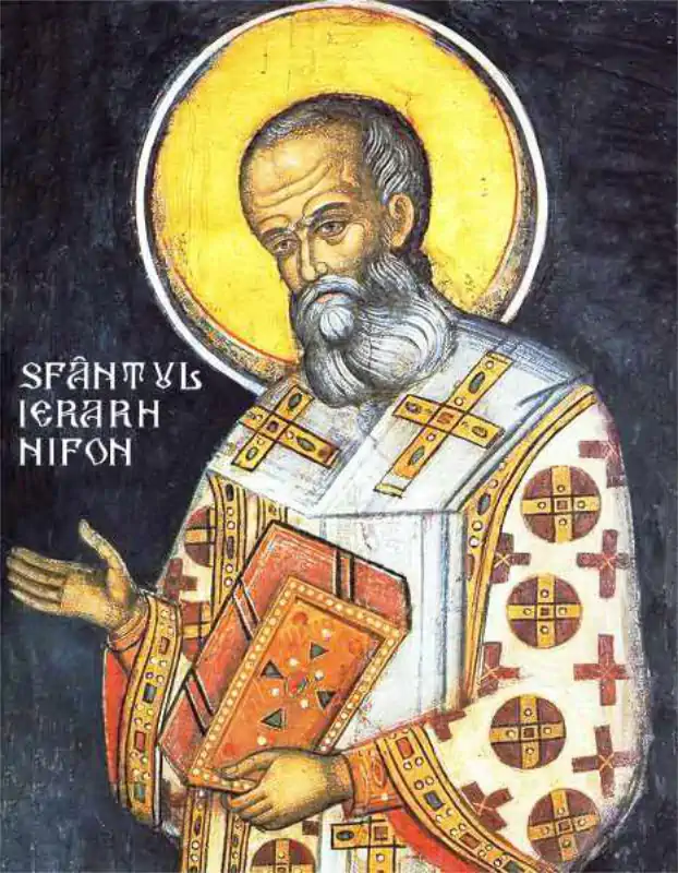 Sfântul Ierarh Nifon s-a născut în ținutul Peloponez din sudul Greciei, undeva în jurul anilor 1434-1440. La naștere, i s-a pus numele Nicolae, dar după ce a intrat în rândurile călugărilor la îndemnul faimosului pustnic Antonie, a primit numele de Nifon.