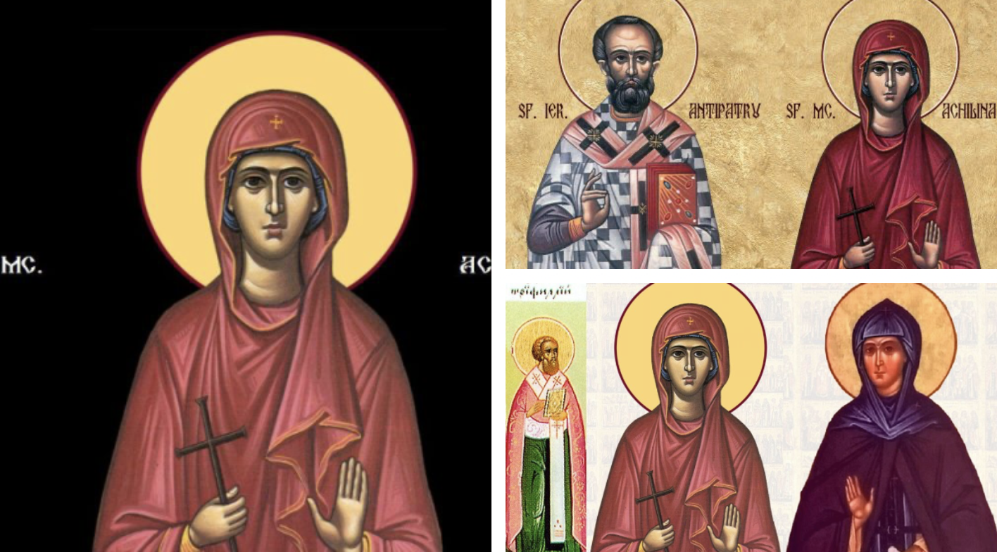 Sf. Achilina s-a născut într-o familie creștină în orașul Biblos, Fenicia (în prezent, Jbaif sau Jubayl așezat pe coasta de est a Mării Mediterane). Aceasta a fost botezată creștin de la episcopul orașului, pe nume Evtolomie.