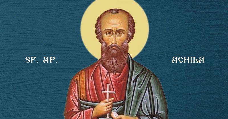 Achila este recunoscut ca fiind unul din cei saptezeci de apostoli, fiind uncenicul Sfantului Apostol Pavel. Inainte de a-si dedica viata in slujba Domnului se casatoreste cu Priscila, cu care va locui un timp in Italia pana cand Claudiu Cezarul ordona ca toti iudeii sa fie fugariti din Roma. Acestia decid sa mearga in Corint, unde Achila a inceput sa propovaduiasca cuvantul Mantuitorului nostru Iisus Hristos. Primeste sfanta credinta de la Sfantul Apostol Petru alaturi de care va aduce pe calea cea dreapta foarte multi pagani, scrie calendarulortodox.ro.