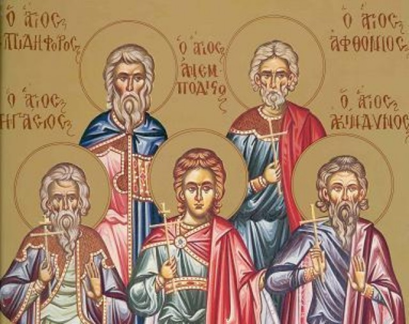 Sfinții Mucenici Achindin, Pigasie, Aftonie, Elpidifor și Agapie au fost creștini persani și au primit mucenicia în vremea împăratului Saport al II-lea (339-379).