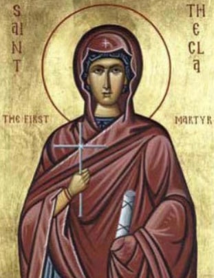Sfanta Mucenita Tecla s-a nascut in cetatea Iconiu, din parinti pagani. S-a logodit cu Tamir, un tanar de neam bun, in timpul in care la Iconiu sosise Sfantul Apostol Pavel, impreuna cu Varnava, ca sa predice Evanghelia.