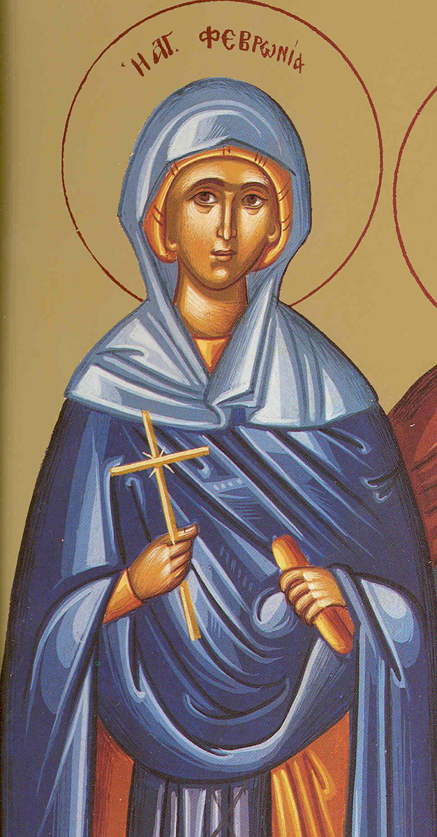 Sfânta Fevronia este pomenită anual pe data de 25 iunie. Aceasta a trăit în timpul Împăratului Dioclețian. La vârsta de 20 de ani, aceasta se afla într-o mănăstire din Mesopotamia. Ea a fost scoasă și torturată în public de cei trimiși de Împăratul Dioclețian pentru a stârpi creștinismul din acea regiune.