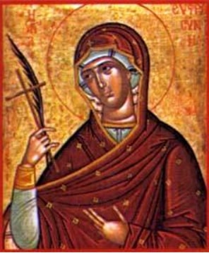 Sânta Eufrosina era fiica unui creștin bogat din Alexandria (Egipt), cu numele Pafnutie. Aceasta a trăit în timpul împăratului Teodosie al II-lea (408-450). Dumnezeu încercând credința lui Pafnutie, mai întâi îi moare soția, iar după aceea Eufrosina dispare de acasă, pe când avea 18 ani.