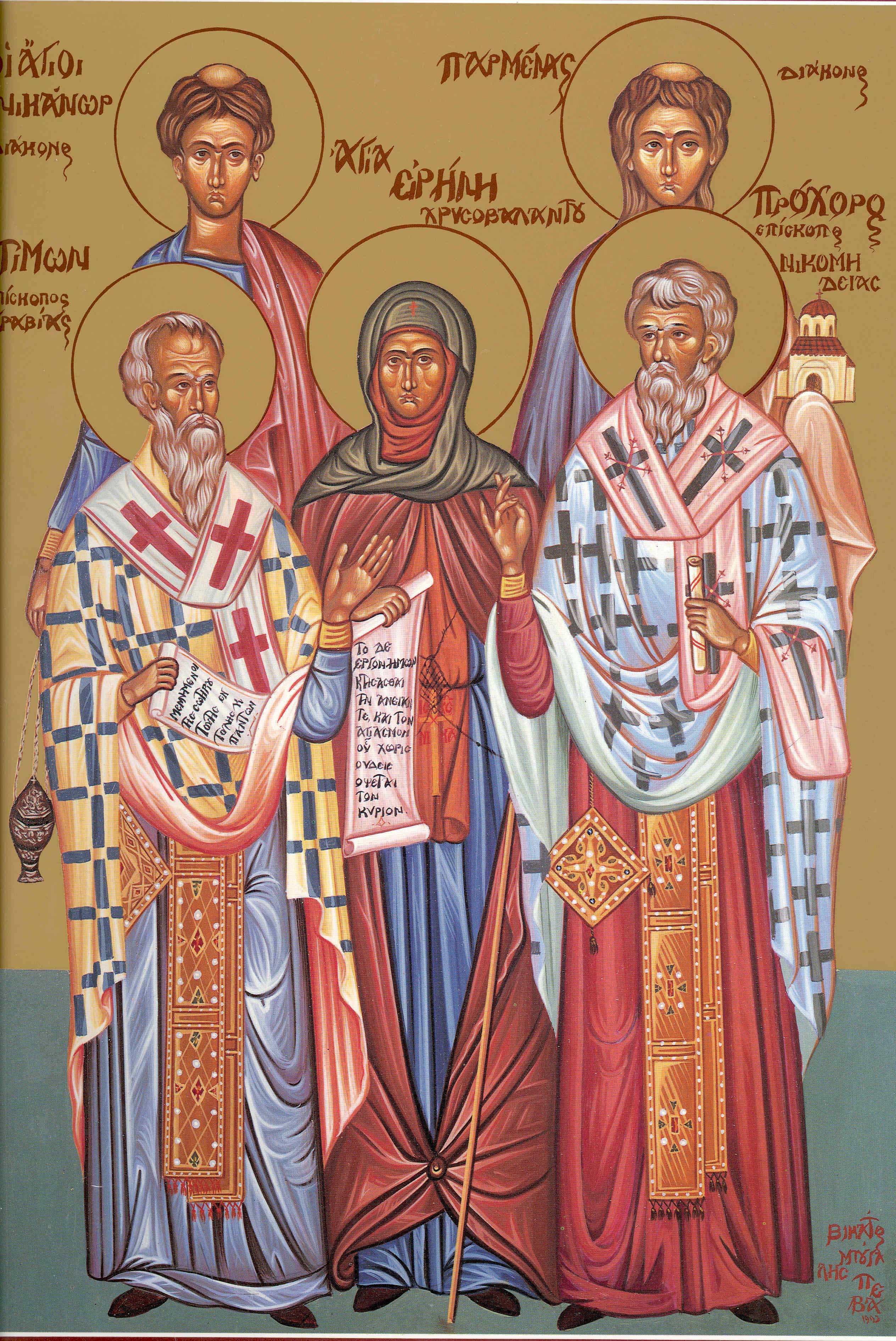 Sfinții Prohor, Nicanor, Timon și Parmena fac parte din primii șapte diaconi ai Bisericii.