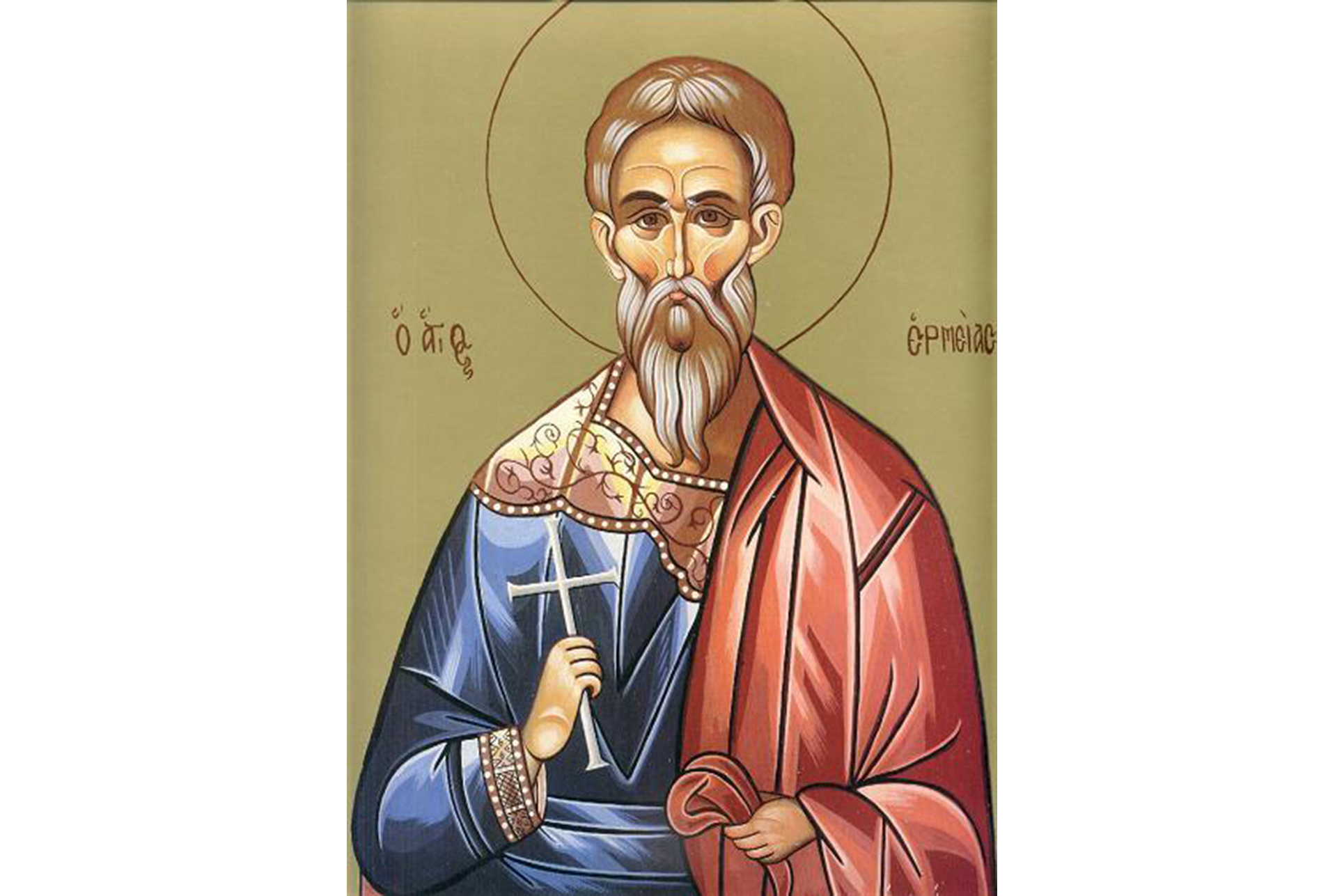 Sfântul Apostol Ermie a fost soldat în armata romana. Pe vremea împăratului Antonin Piul (138-161), i s-a cerut să renunțe la credința în Iisus Hristos. Acesta a refuzat și a fost supus la numeroase chinuri: dinții i-au fost zdrobiți cu o piatră, pielea de pe față i-a fost luată cu un cuțit și a fost aruncat în foc. Prin harul și puterea lui Dumnezeu, Sfântul Apostol Ermie a rămas nevătămat.