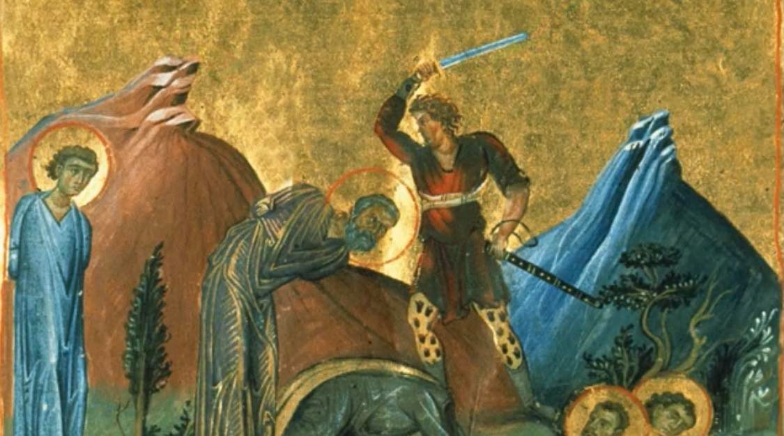 Iar Sfintii rabdau, strigand: "Noi slujim lui Hristos. Dumnezeul cel adevarat, iar de zeii cei deserti ne lepadam". Si li se taiara mainile si picioarele, iar la urma si capetele.