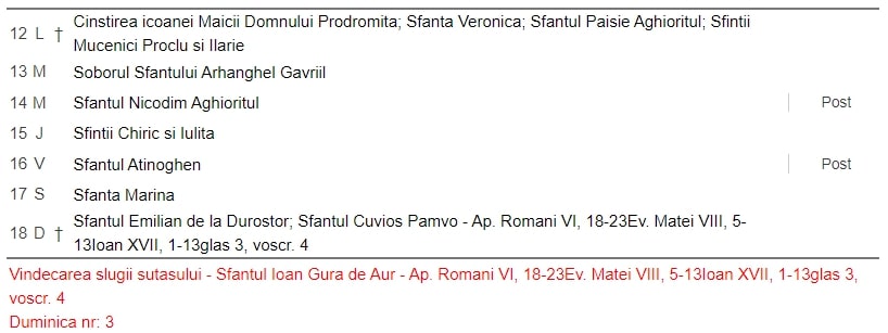 Sărbătorile marcate cu cruce neagră în calendarul ortodox sunt următoarele: