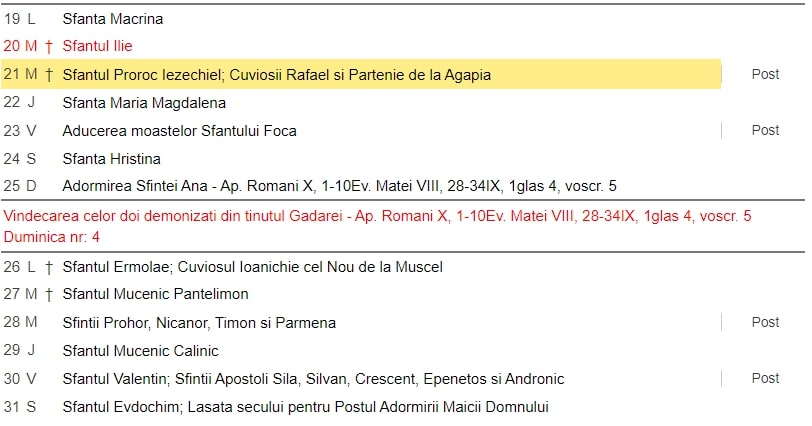 Calendarul creştin ortodox complet pentru luna iulie 2021