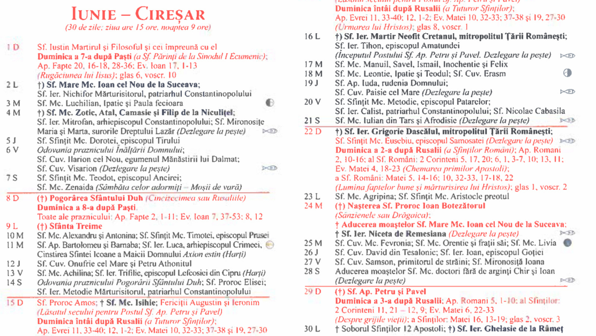 15 iunie 2025- Lasatul secului pentru Postul Sfintilor Petru si Pavel; Sfantul Proroc Amos (cruce neagră)