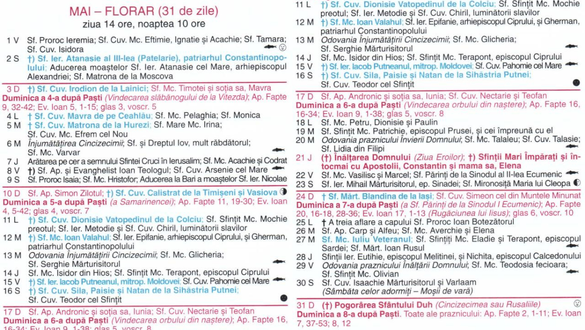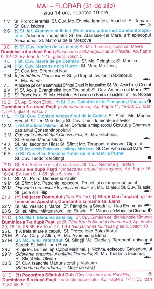 Calendar ortodox mai 2026