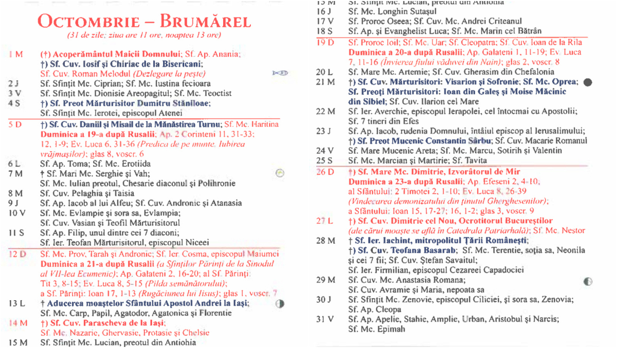 Calendar ortodox octombrie 2025