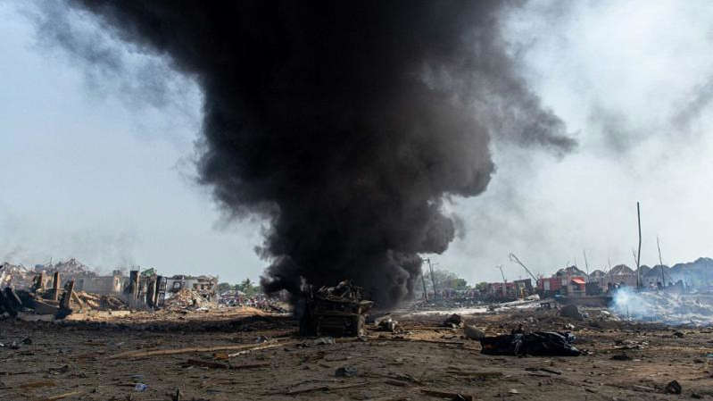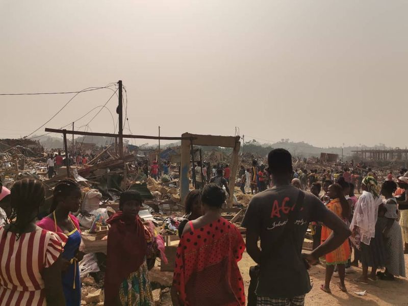 Potrivit primelor informații, a fost vorba de "un accident, implicând un camion care transporta materiale explozive pentru o companie minieră, o motocicletă şi un al treilea vehicul, care a avut loc în apropierea unui transformator electric şi a condus la explozie", a indicat ministrul informaţiei, Kojo Oppong-Nkrumah.
