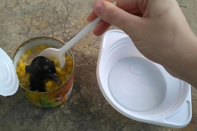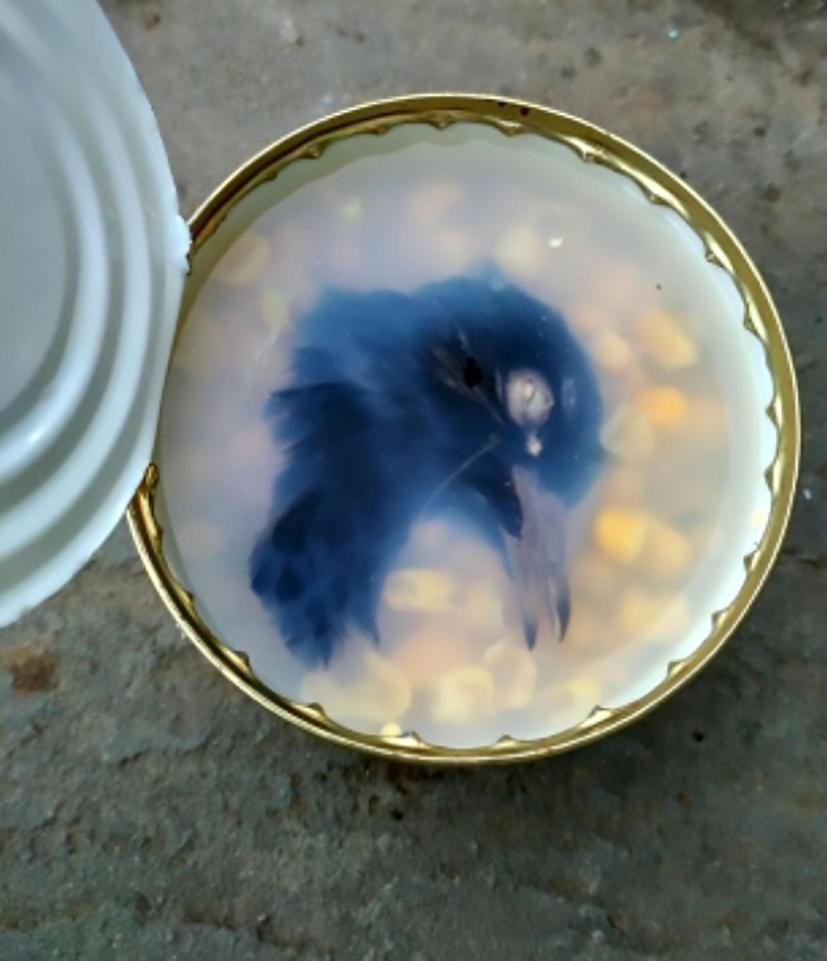 Emma Leusenko, o tanara in varsta de 22 de ani din Ucraina, a cumparat o conserva cu porumb dulce pe care nu o va uita niciodata. Fata a deschis conserva si a vrut sa o puna in salata, dar imediat ce i-a scos capacul i s-a facut rau si a fost la un pas sa vomite. Un cap de porumbel plutea deasupra boabelor de porumb.
