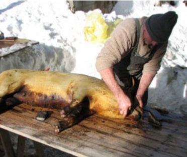 Unul dintre momentele unice in cadrul ritualului anual al taierii porcului este scosul splinei.