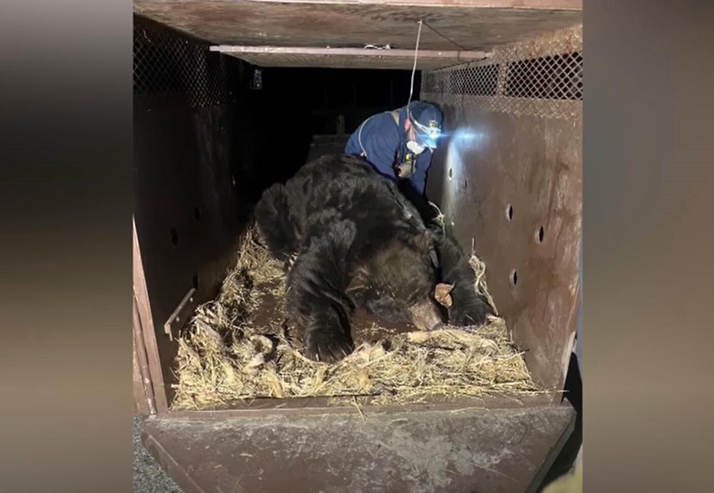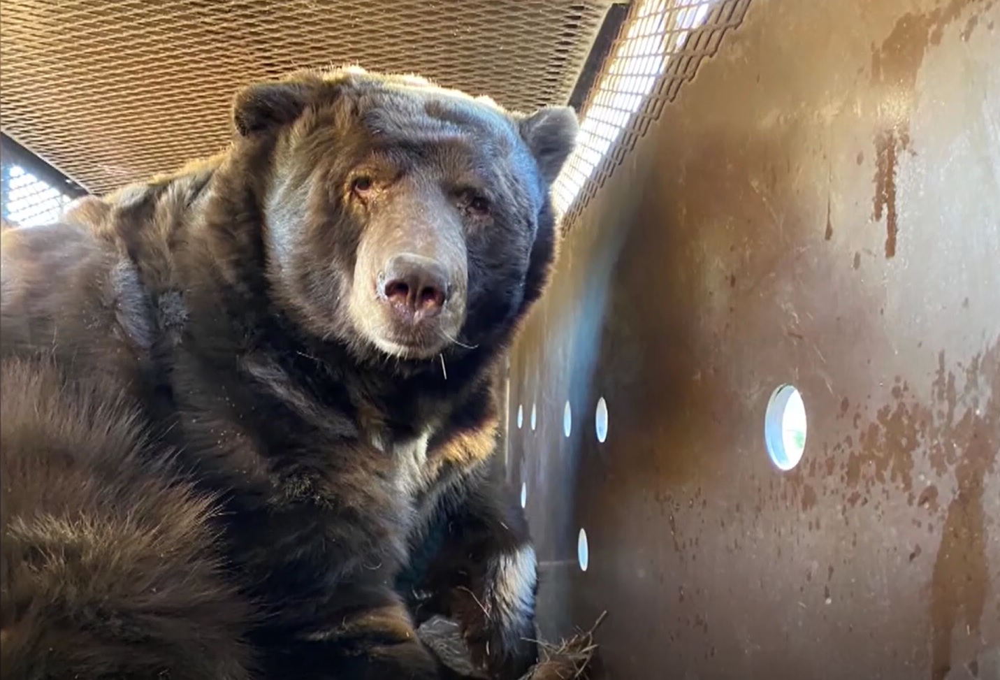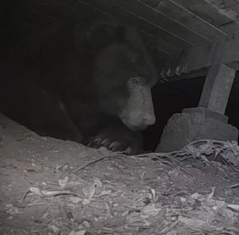 Ursul, care cântărește 240 de kg, se crede că și-a căutat adăpost în timpul incendiului, cu peste trei săptămâni în urmă. "Cred că în timpul incendiului a rămas destul de mult timp acolo. Cred că s-a speriat", a spus Arbid.