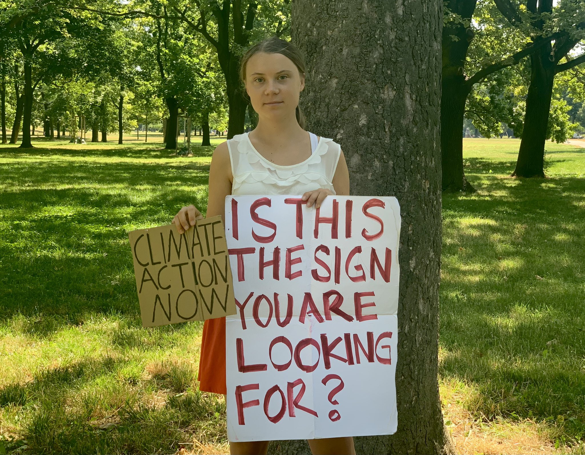 În mai multe postări de pe contul său de Twitter, Greta Thunberg anunță că a prezis situația climatică cu care se confruntă Globul Pământesc în prezent și îndeamnă oamenii să ajute la combaterea încălzirii globale.