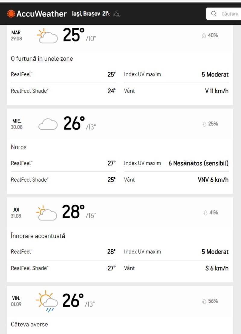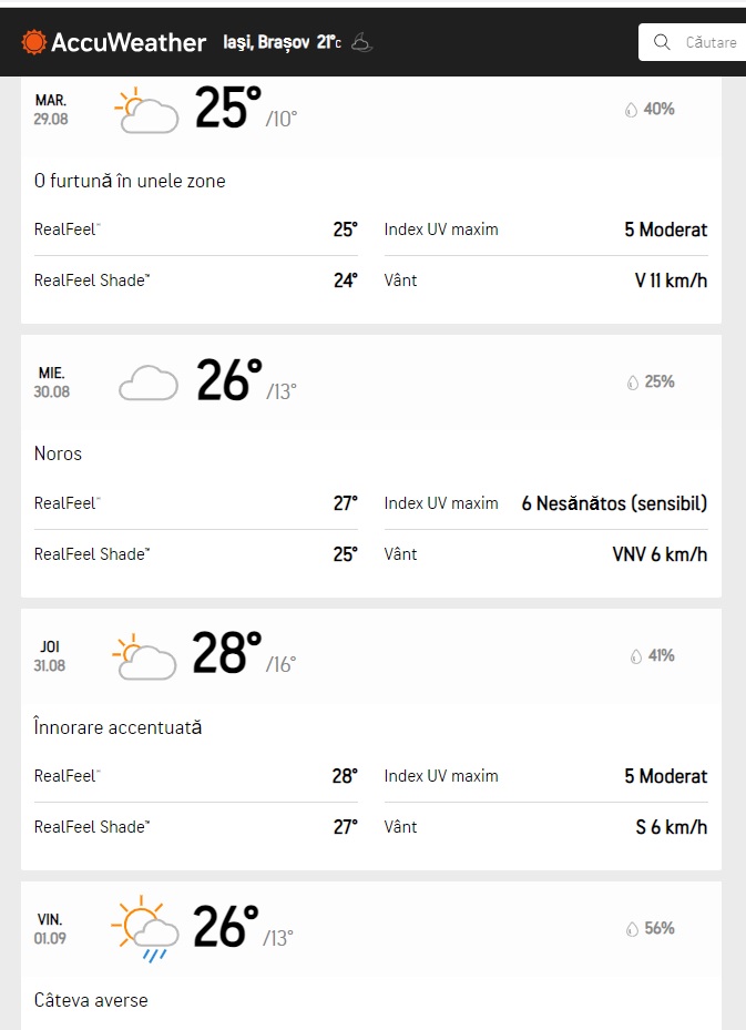După data de 29 august vremea se mai răcorește, meteorologii de AccuWeather anunțând temeperaturi mai apropiate de normalul acestei perioade.